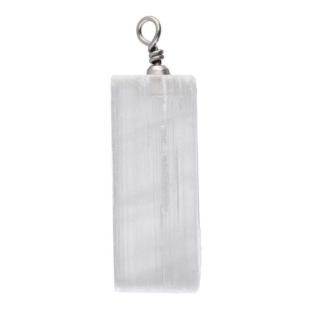 Rectangular selenite pendant from Morocco, perfect for balancing energy and bringing spiritual clarity.