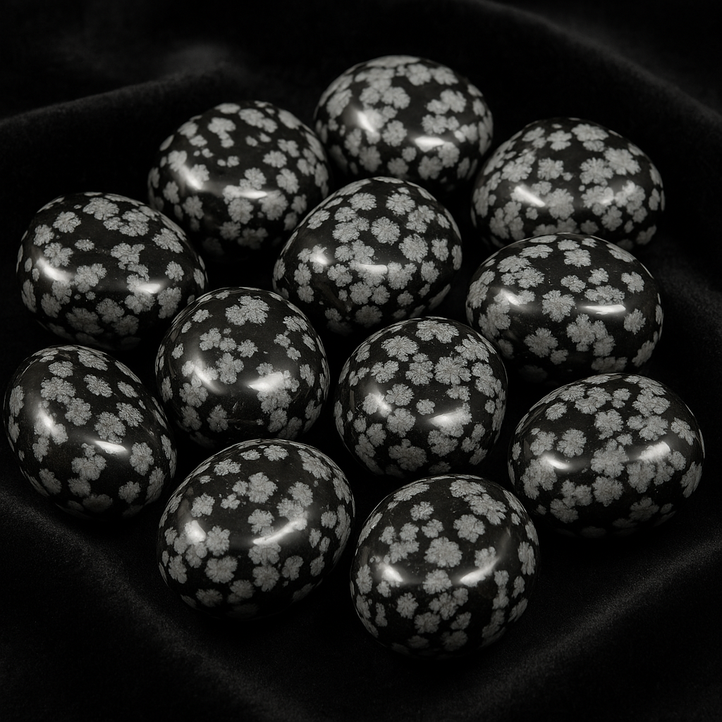 Natural snowflake obsidian polished stone. Perfect for emotional balance, releasing negative patterns, and reconnecting with the self.