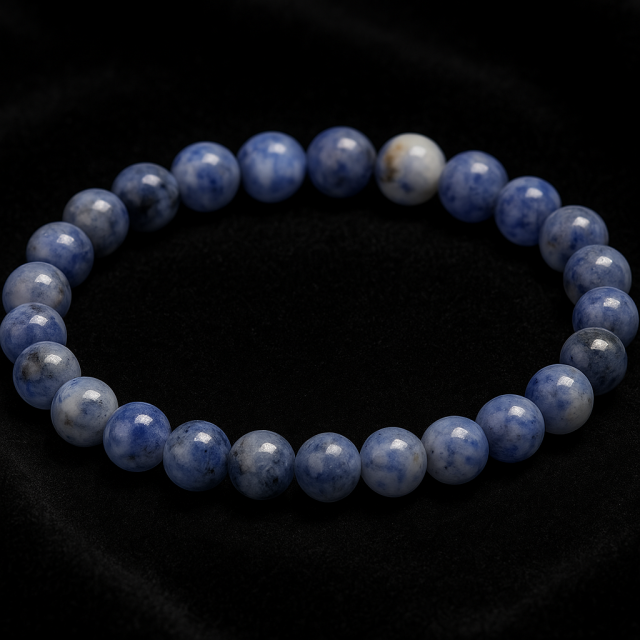 Elastic bracelet made of natural sodalite. Perfect for calming the mind, enhancing intuition, and encouraging inner communication.