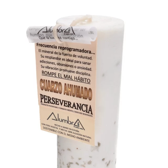 A candle with natural smoky quartz to strengthen willpower, break old habits, and promote self-discipline. Perfect for those seeking to overcome emotional blockages and repetitive patterns.