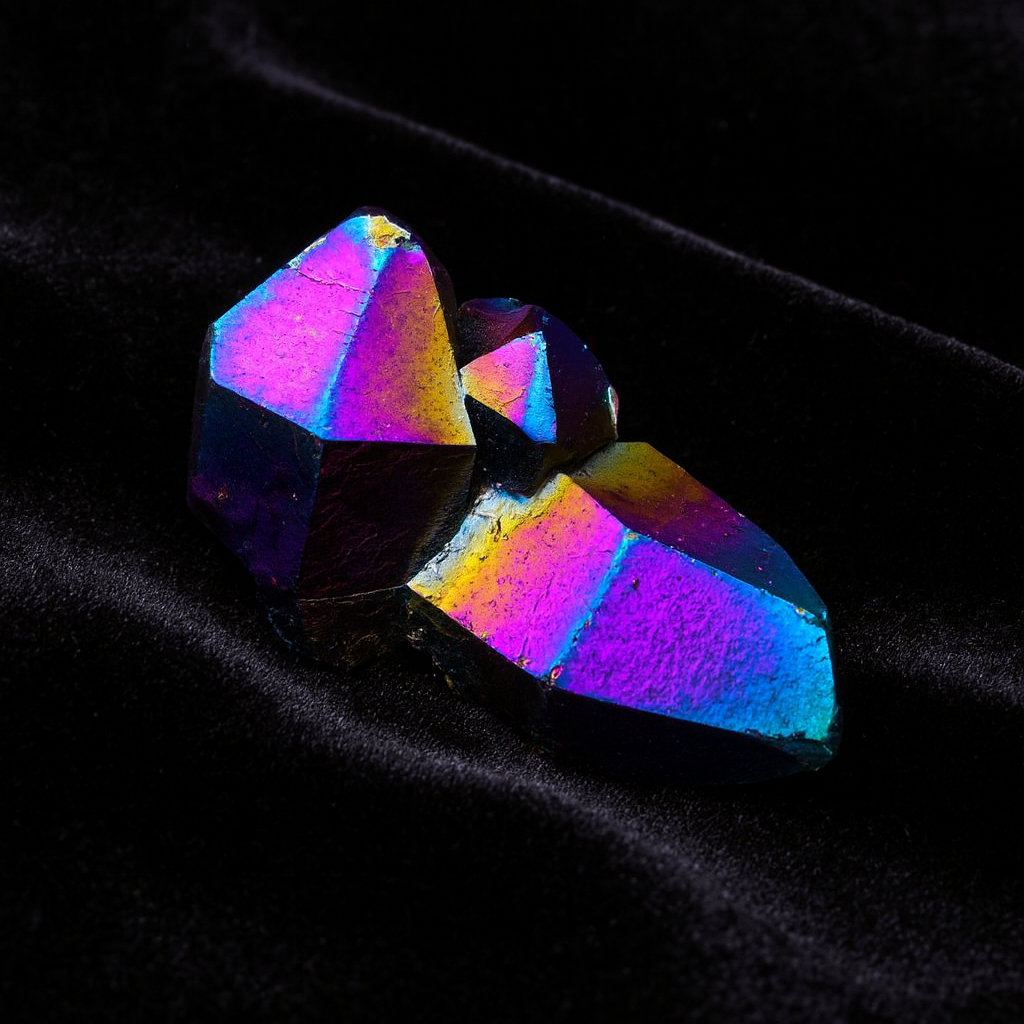 Magical fragments of quartz treated with titanium, charged with iridescent energy that awaken creativity and cosmic vibration.