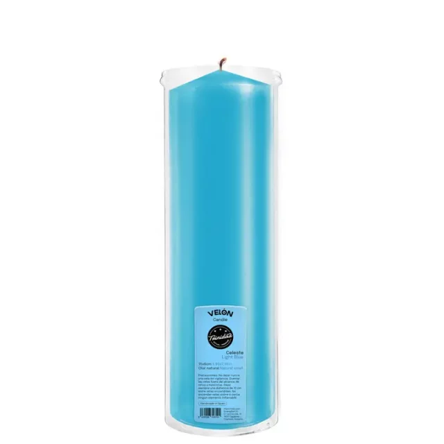 An icy blue candle with kyanite fragments, perfect to strengthen true friendship, sincere bonds, and deep-rooted trust.