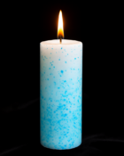 An icy blue candle with kyanite fragments, perfect to strengthen true friendship, sincere bonds, and deep-rooted trust.