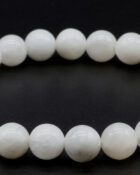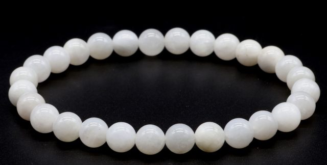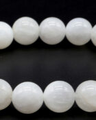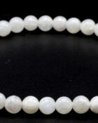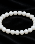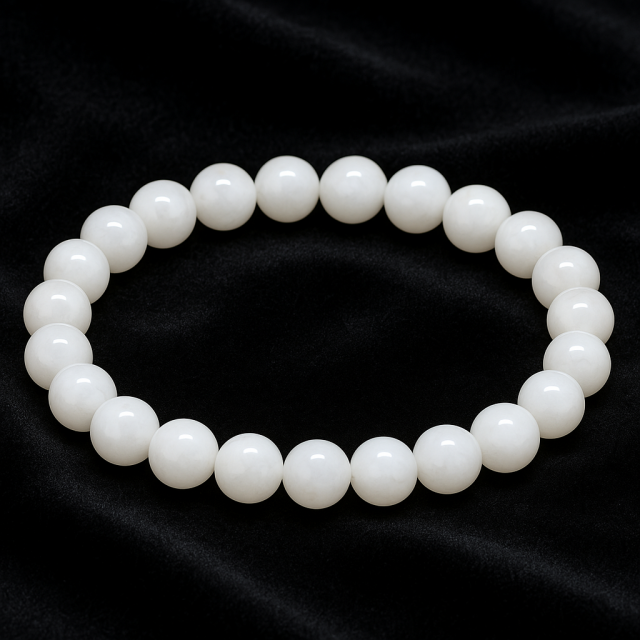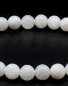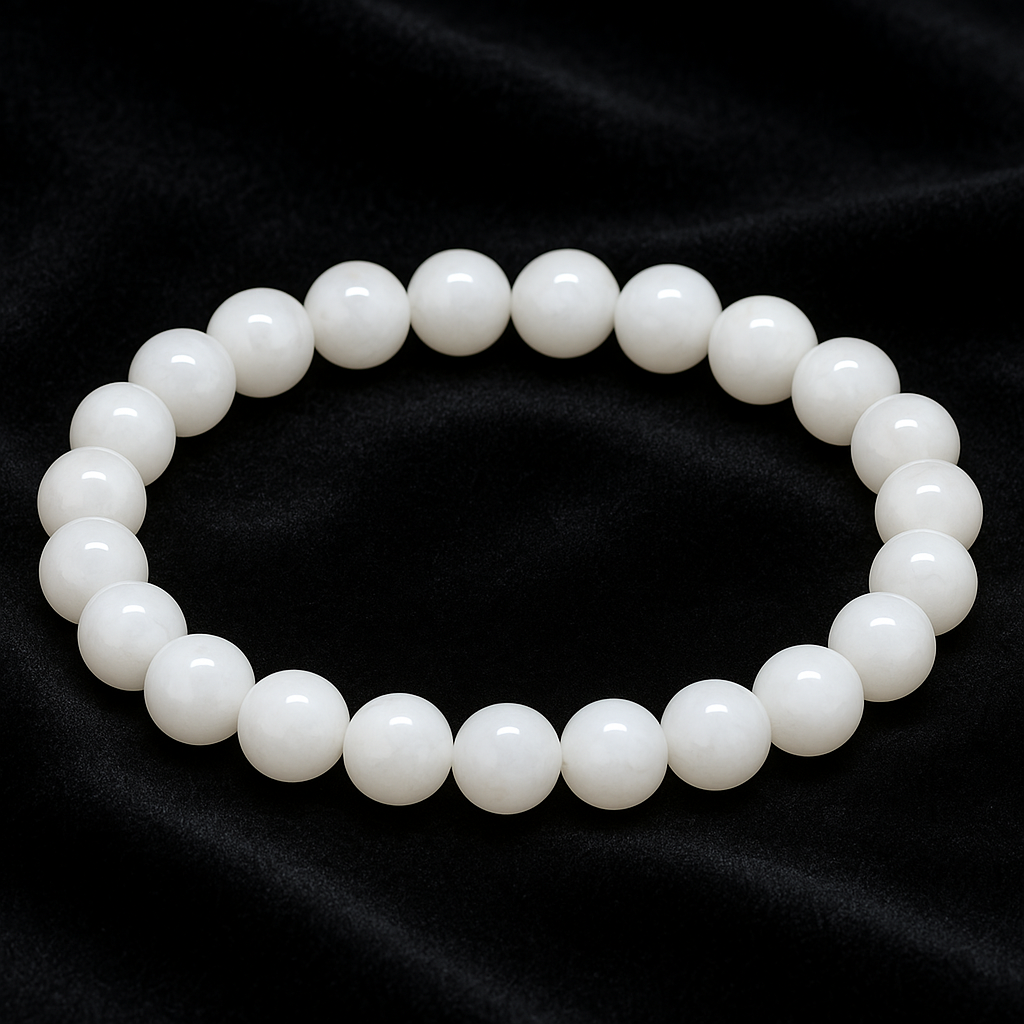 This bracelet features smooth beads of natural white moonstone, with a soft, pearly glow that resembles moonlight dancing on water. Its silky texture and serene hue symbolize purity, inner wisdom, and divine protection.