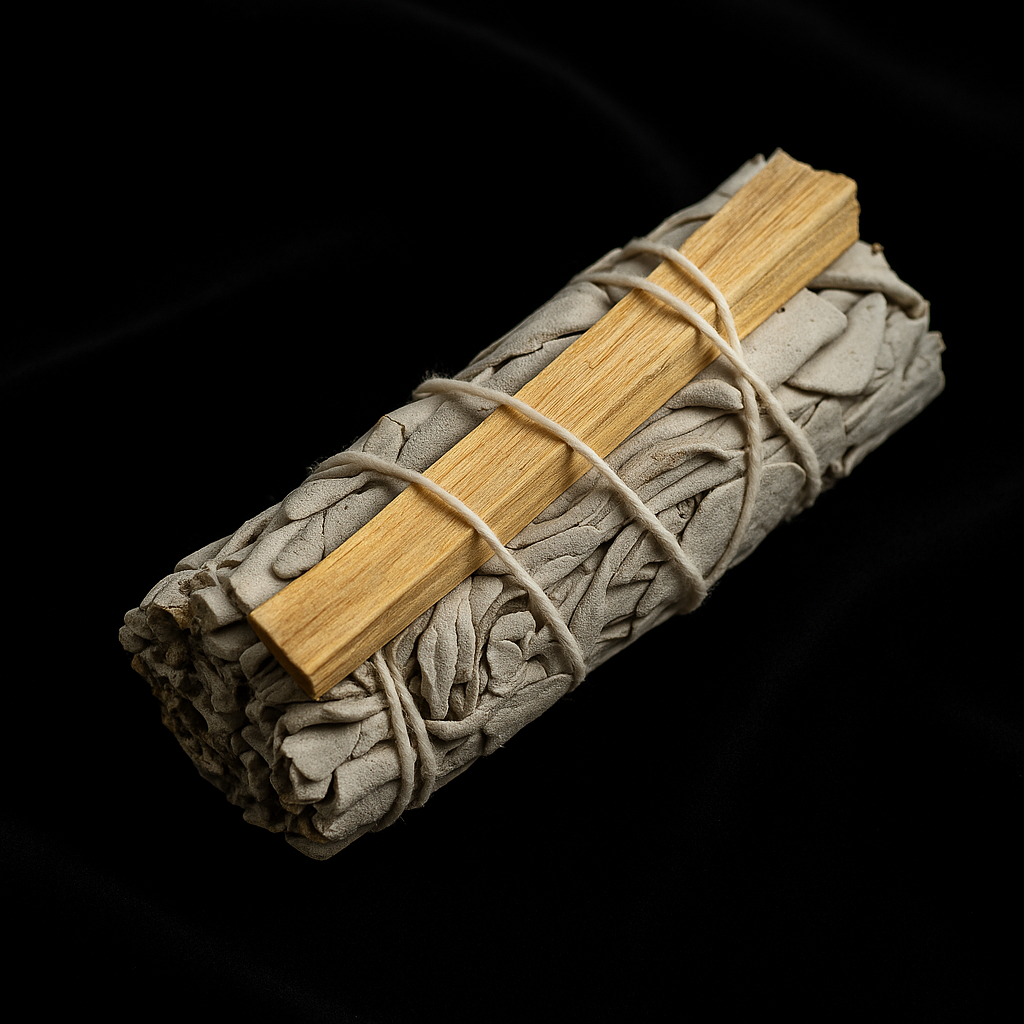 This sacred bundle combines two powerful elements from different traditions: White Sage, used by Native Americans for spiritual cleansing, and Palo Santo, a holy wood from the Andes known for elevating energetic vibration.