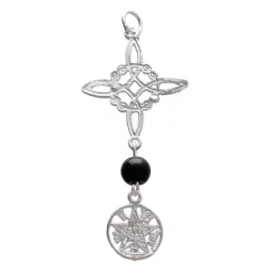 Powerful silver pendant with dual protection symbols: the Witch's Knot and the Tetragrammaton. Perfect to wear as a protective talisman.