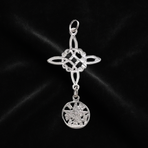 This sterling silver pendant features a mystical fusion of two powerful protective symbols: the Witch’s Knot, an ancient Celtic emblem of unity, strength, and protection; and the Tetragrammaton, a cabalistic and esoteric symbol that invokes divine protection, balance, and spiritual power.