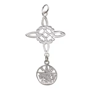 Powerful silver pendant with dual protection symbols: the Witch’s Knot and the Tetragrammaton. Perfect to wear as a protective talisman.