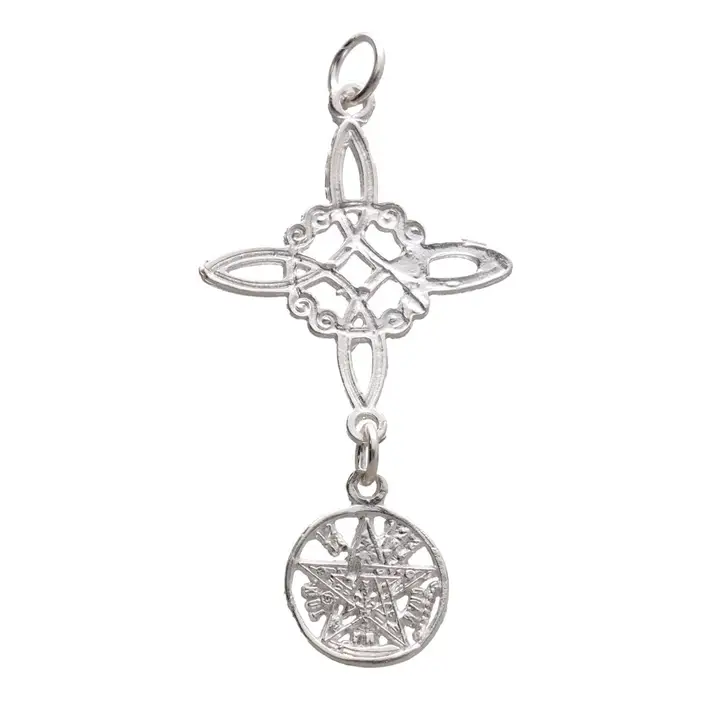 This sterling silver pendant features a mystical fusion of two powerful protective symbols: the Witch’s Knot, an ancient Celtic emblem of unity, strength, and protection; and the Tetragrammaton, a cabalistic and esoteric symbol that invokes divine protection, balance, and spiritual power.
