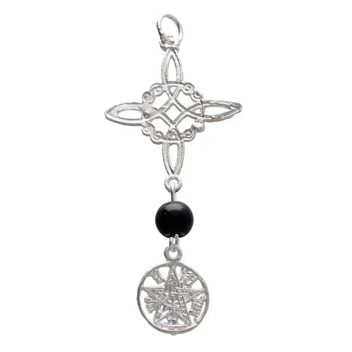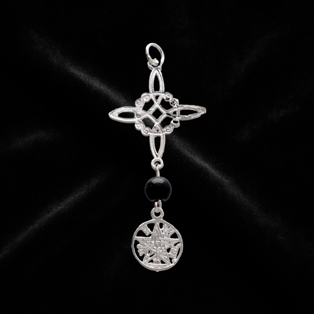 This sterling silver pendant features a mystical fusion of two powerful protective symbols: the Witch’s Knot, an ancient Celtic emblem of unity, strength, and protection; and the Tetragrammaton, a cabalistic and esoteric symbol that invokes divine protection, balance, and spiritual power.