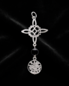 Powerful silver pendant with dual protection symbols: the Witch's Knot and the Tetragrammaton. Perfect to wear as a protective talisman.