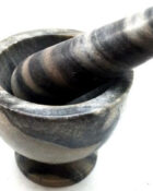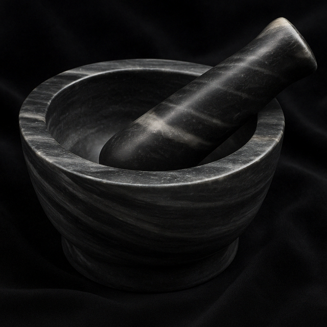 Zebra marble symbolizes balance, inner strength, and the harmony of duality. Perfect for grinding ritual herbs, incense, or consecrated salts, it’s also ideal for altars, magical cooking practices, or as a soulful decorative piece. Each use becomes a sacred act, where the sound of grinding echoes alchemical transformation.