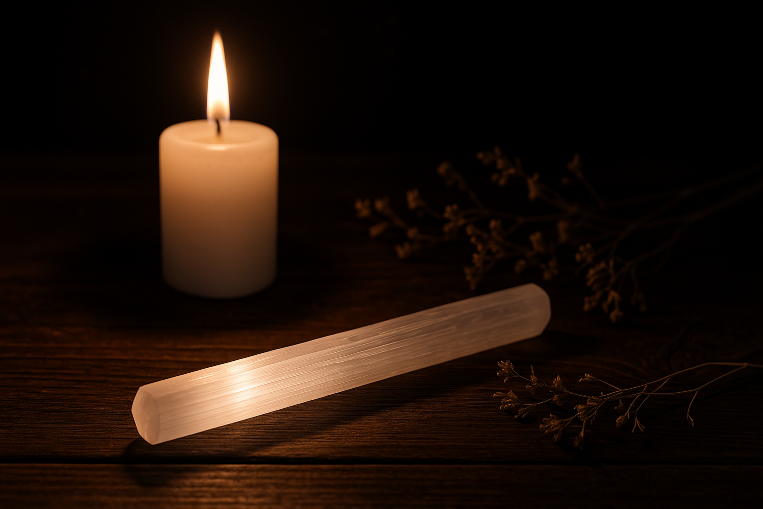 Selenite doesn’t shout—it whispers like the moon, but when it touches you, it lights up everything.